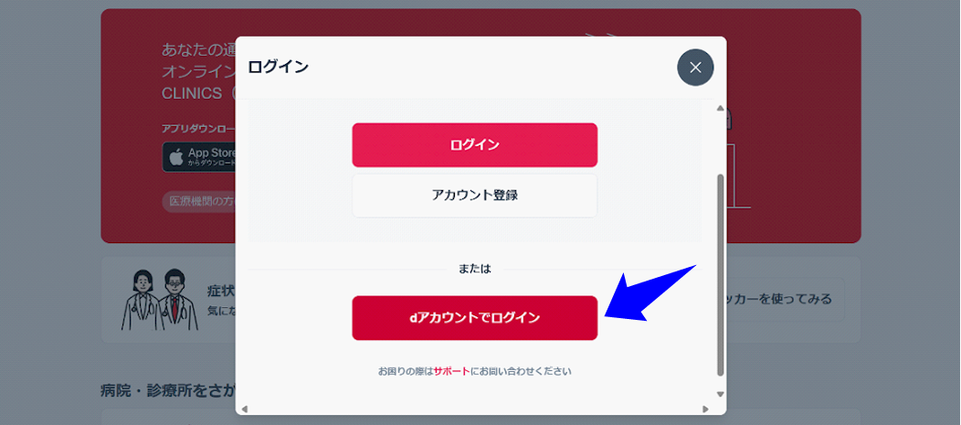 dアカウントを用いてCLINICSアカウントを新規登録する方法(登録済みのdアカウントを使用することも、dアカウントを新規発行して使用することもできます。) |