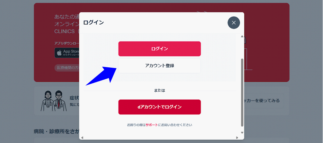 CLINICSアカウントを登録する |
